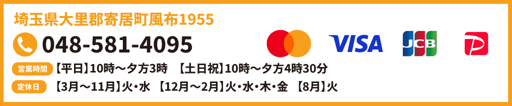 | 営業時間 | 【平日】10時〜夕方3時 【土日祝】10時〜夕方4時30分 |