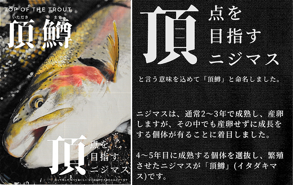 頂点を目指すにじますとして命名されたオリジナルのにじます、ぜひ食べに来てくださいね!!!