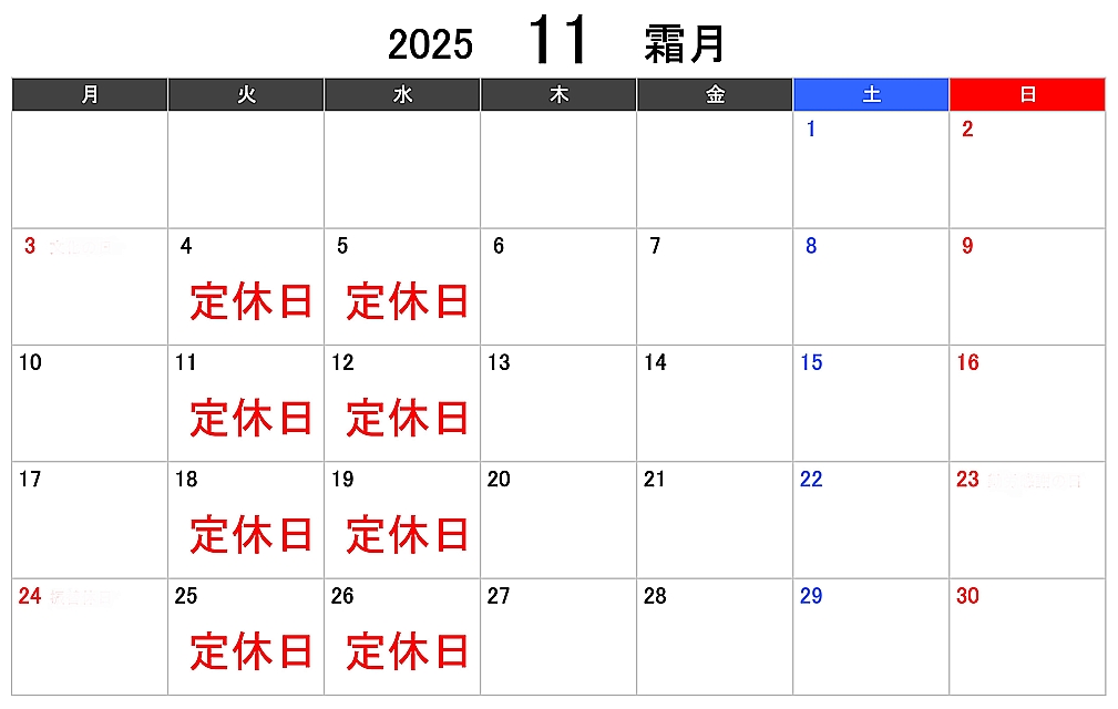 【3月~11月の期間中は、火曜・水曜の定休日です